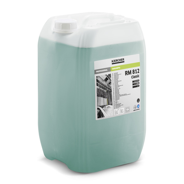 Krachtig reinigend, schuimintensief actief schuim voor het effectief verwijderen van olie, vet en minerale verontreinigingen. VDA-conform en zacht voor oppervlakken en borstels. Geselecteerde ingrediënten en een speciale formulering voor een gelijktijdig zachte en intensieve reiniging van auto's en bedrijfswagens: het VehiclePro actief schuim RM 812 Classic van Kärcher. Het bijzonder schuimintensieve actieve schuim, dat geschikt is voor gebruik in zelfbedieningsautowasstraten en autowasstraten, verwijdert betrouwbaar en effectief vet, olie en minerale verontreinigingen van voertuigoppervlakken. RM 812 Classic kan ook gebruikt worden als borstelshampoo. Het volumineuze, lichtgekleurde schuim ondersteunt het glijvermogen van de borstels en beschermt zo de lak, terwijl tegelijkertijd de herverontreiniging van de borstels aanzienlijk wordt verminderd. Bovendien is het actieve schuim met hoog rendement afgestemd op volgende wasproducten en voorkomt zo strepen, scheidt snel olie en water in de olieafscheider en is VDA-conform.