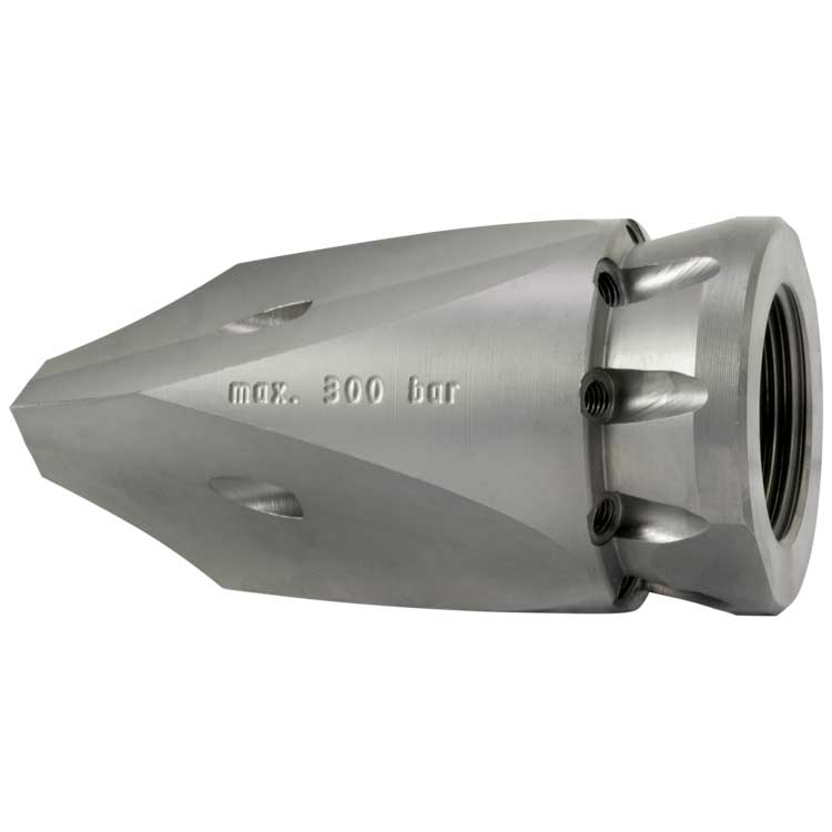 Seitliche Frontstrahlen mit gehärteten Edelstahl Düseneinsätzen.