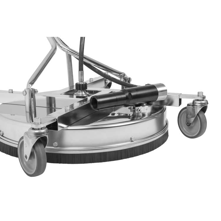 Durchmesser: 520 mmEingang: 3/8"IGMax. 350 bar / 120°C- Interne afzuiging, geen waterzuiger meer nodig.» Niet voor gips geschikt.» Dank vier 100 mm Kunststoffrollen lässt sich der Flächenreiniger mit Leichtigkeit bewegen.» Der Rahmen sowie sämtliche Befestigungen sind aus Edelstahl gefertigt und sorgen für zusätzliche Stabilität. Beste Reinigungsergebnisse werden dank eines höhenverstellbaren Gehäuses erzielt.» Drehgelenk mit verstärkten, selbstschmierenden Kugellagern aus Edelstahl und einem Karbiddichtungssystem speziell für hohe Drehzahlen. Diese Kombination verspricht eine lange Lebensdauer.» Komplett mit zwei Hochdruckpistolen ST-2605 mit der patentierten Low Trigger Force Technik, zwei Hochdruckdüsen 1/8" AG 15° 03.