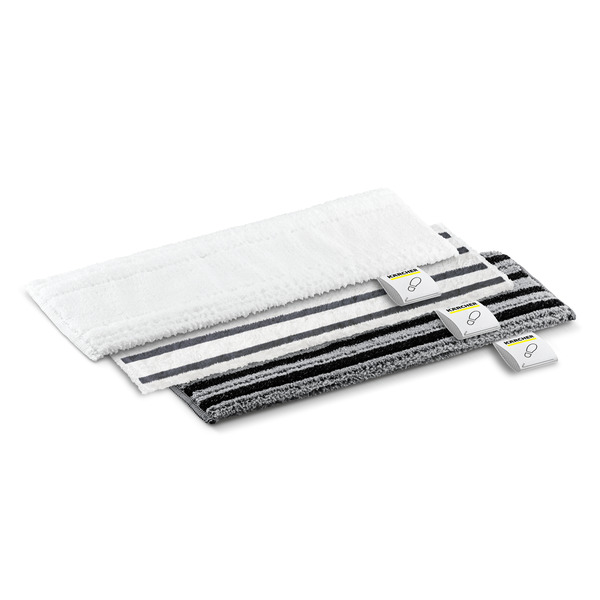 De EasyFix Allrounder vloerreinigingsdoekenset bevat drie verschillende doeken voor een hygiënische vloerreiniging met de stoomreiniger. De Sensitive-doek heeft een verminderde stoomdoorlaatbaarheid - ideaal voor gevoelige, afgedichte vloeren. De Ultra Abrasive-doek heeft een hoger aandeel schuurvezels voor het bijzonder eenvoudig verwijderen van hardnekkig vuil. De Schuurdoek ondersteunt het verwijderen van vuil met schuurvezels en biedt een uitstekende vuilopname met extra zachte textieldelen, bijvoorbeeld bij het opdweilen na het reinigen met de Ultra Schuurdoek. Dankzij het klittenbandsysteem kunnen de doeken eenvoudig en snel aan het vloermondstuk van de stoomreiniger worden bevestigd: druk eenvoudig het vloerreinigingsdoekje op het EasyFix vloermondstuk en klaar. Tijdens het werk blijft het doek veilig op zijn plaats. Na het reinigen kan de gebruikte doek zonder contact met vuil uit de EasyFix-vloermond worden verwijderd: je stapt eenvoudig op het voetlipje op de doek en trekt de vloerzuigmond omhoog en weg.